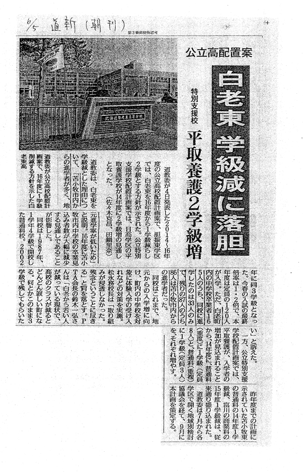 • 『白老東高校を守る会』を発足しました 2013年8月16日